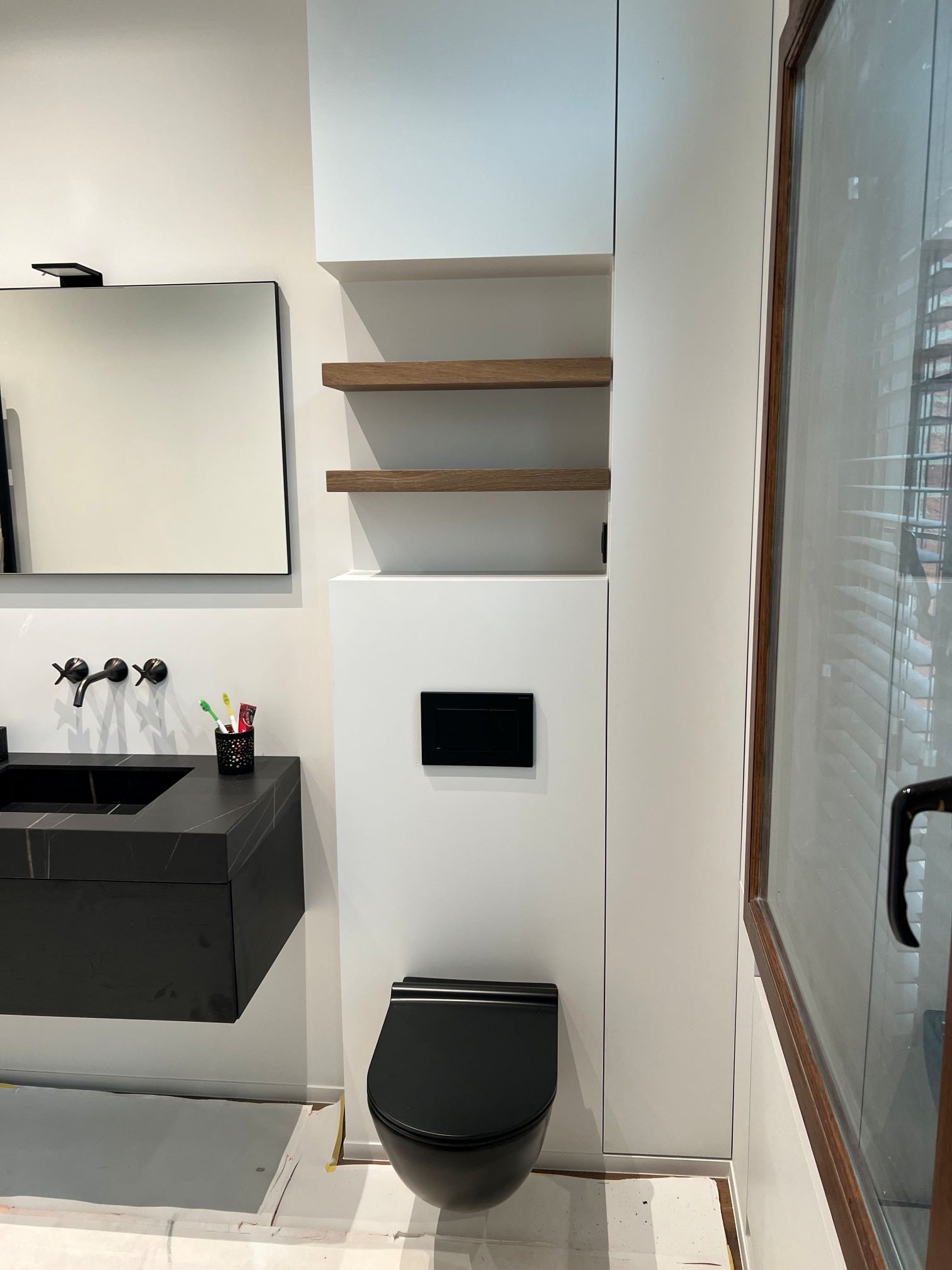 Badkamer renovatie uitbraak plafond uitbraak vloer plaatsen van mdf wanden