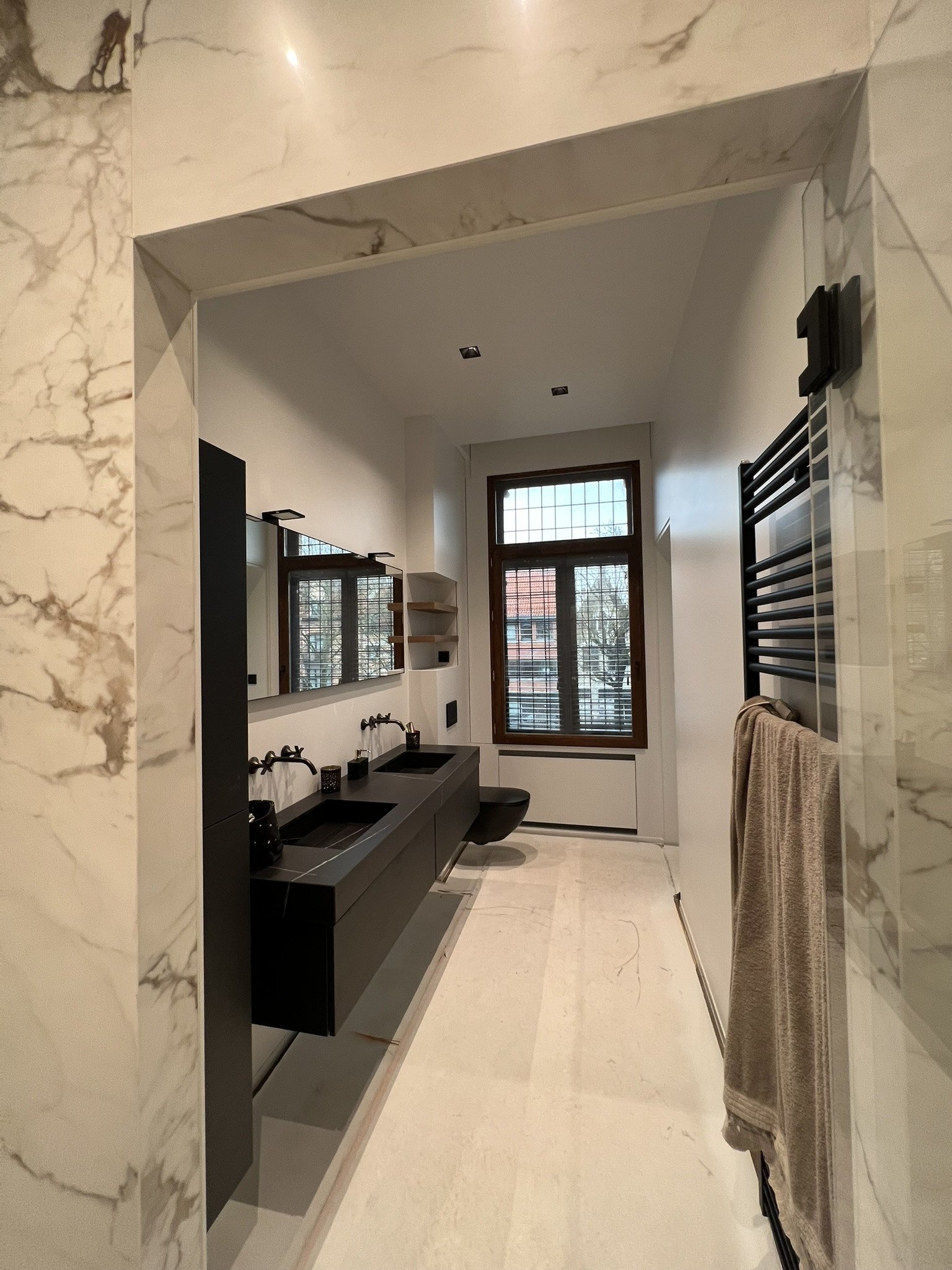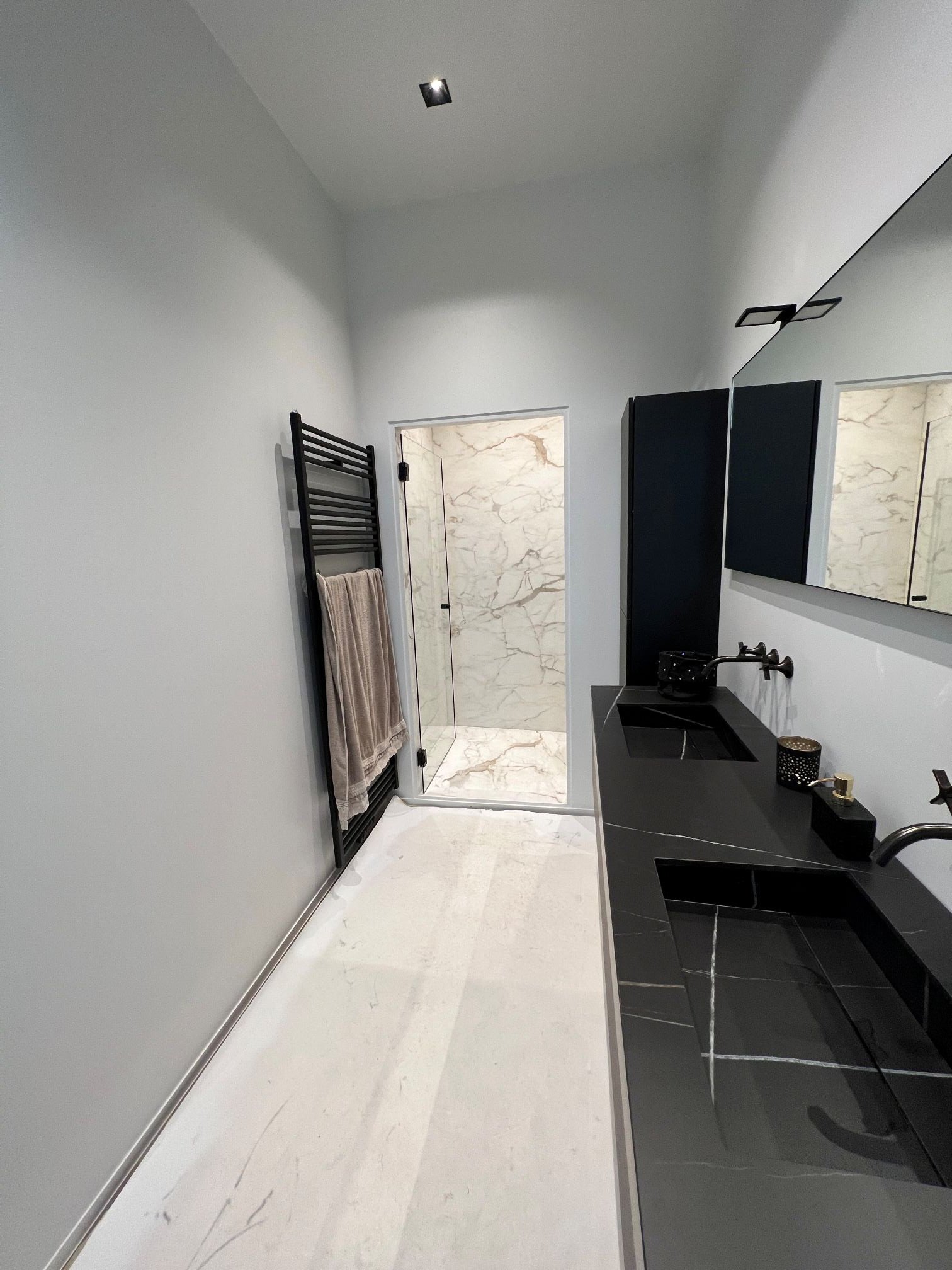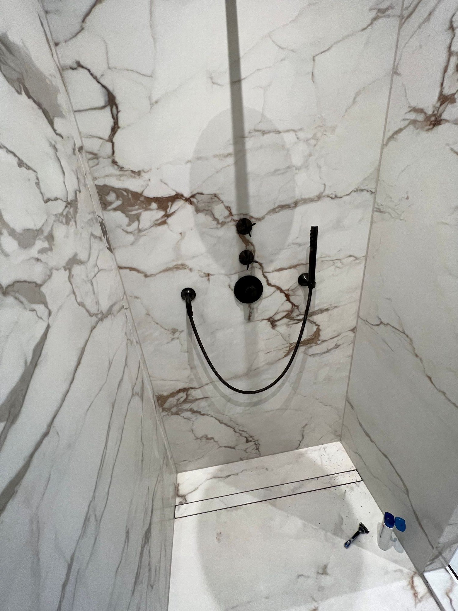 Plaatsen van marmer ceramiek 1500mm op 3000mm voor inloop douche 1 ster verdiep