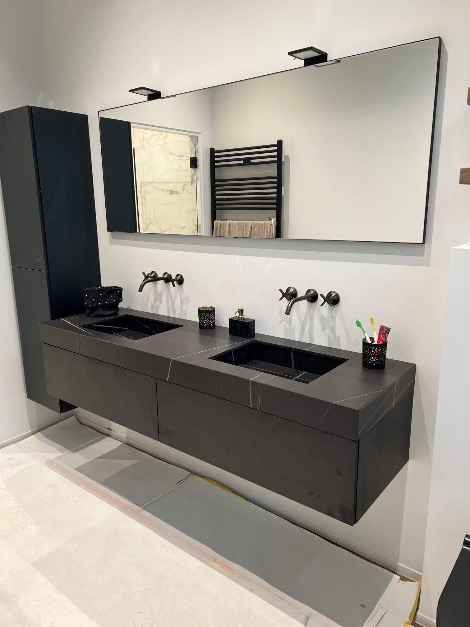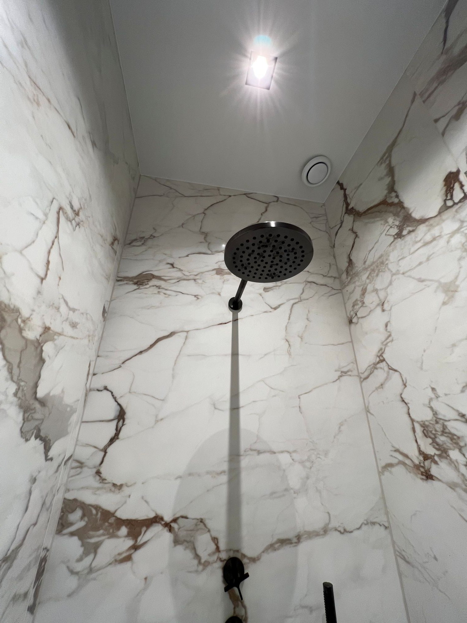 Plaatsen van marmer ceramiek 1500mm op 3000mm voor inloop douche 1 ster verdiep
