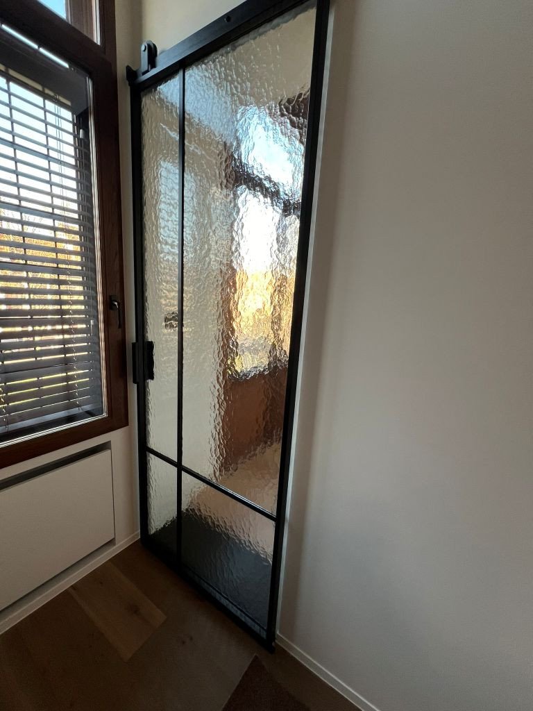 In een Oud herenhuis bouw 1900 plaatsen van metalen schuifdeur met glas met soft close en open systeem